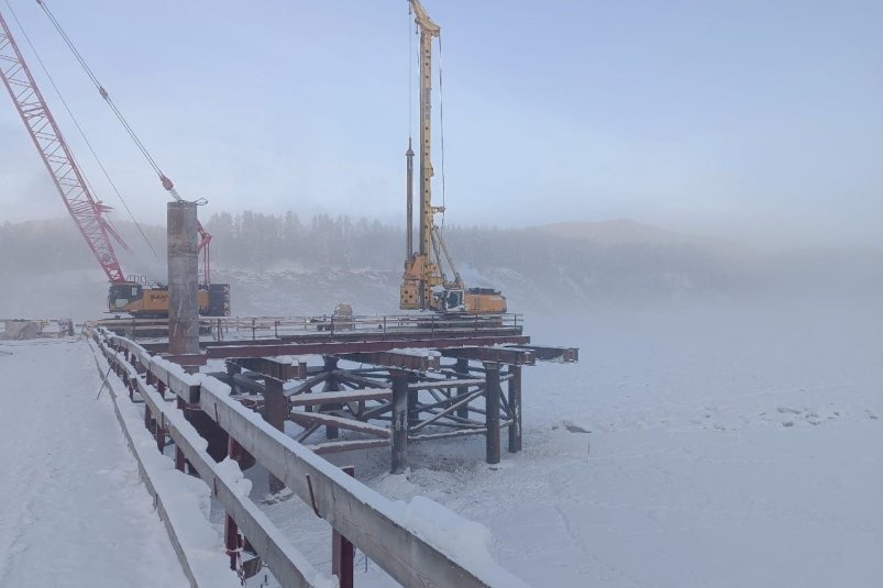 IrkutskMedia, 8 января. На строительстве моста через реку Витим в Бодайбинском районе Иркутской области приступили к возведению русловых опор. Объект возводится на автодороге Таксимо — Бодайбо в рамках нацпроекта "Инфраструктура для жизни" при участии компании "Полюс". Об этом сообщили в пресс-службе правительства региона.