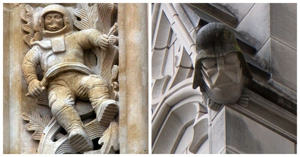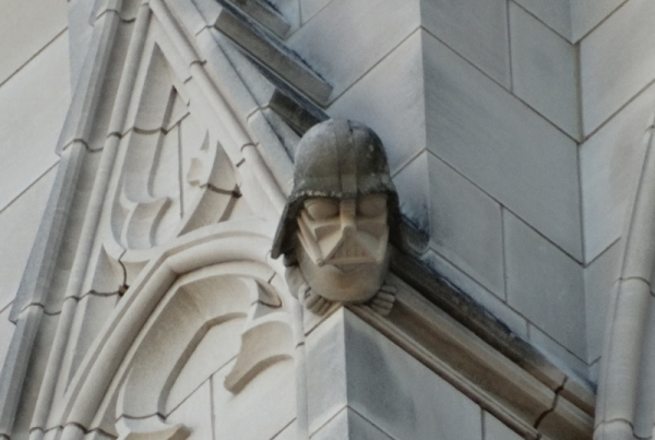 Вашингтонский национальный собор, шестой по величине в мире, ежегодно привлекает полмиллиона посетителей. Для самых внимательных среди шпилей северо-западной башни притаился официально утверждённый гротеск с узнаваемым профилем Дарта Вейдера, злодея из "Звёздных войн". Это ироничный подарок современной поп-культуры неоготическому гиганту.