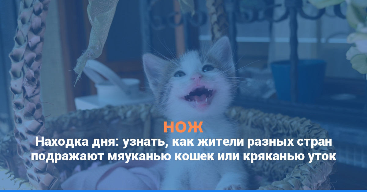 Коты и кошки «говорят» «мяу», собаки — «гав», а лошади — «иго-го»? На самом деле, представители других культур наверняка поспорят с нами: они с малых лет немного иначе воспринимают основы биоакустики. Узнать, как жители разных стран воссоздают звуки животных можно, изучив проект How do animals sound across languages? («Как звучат животные на разных языках?»).