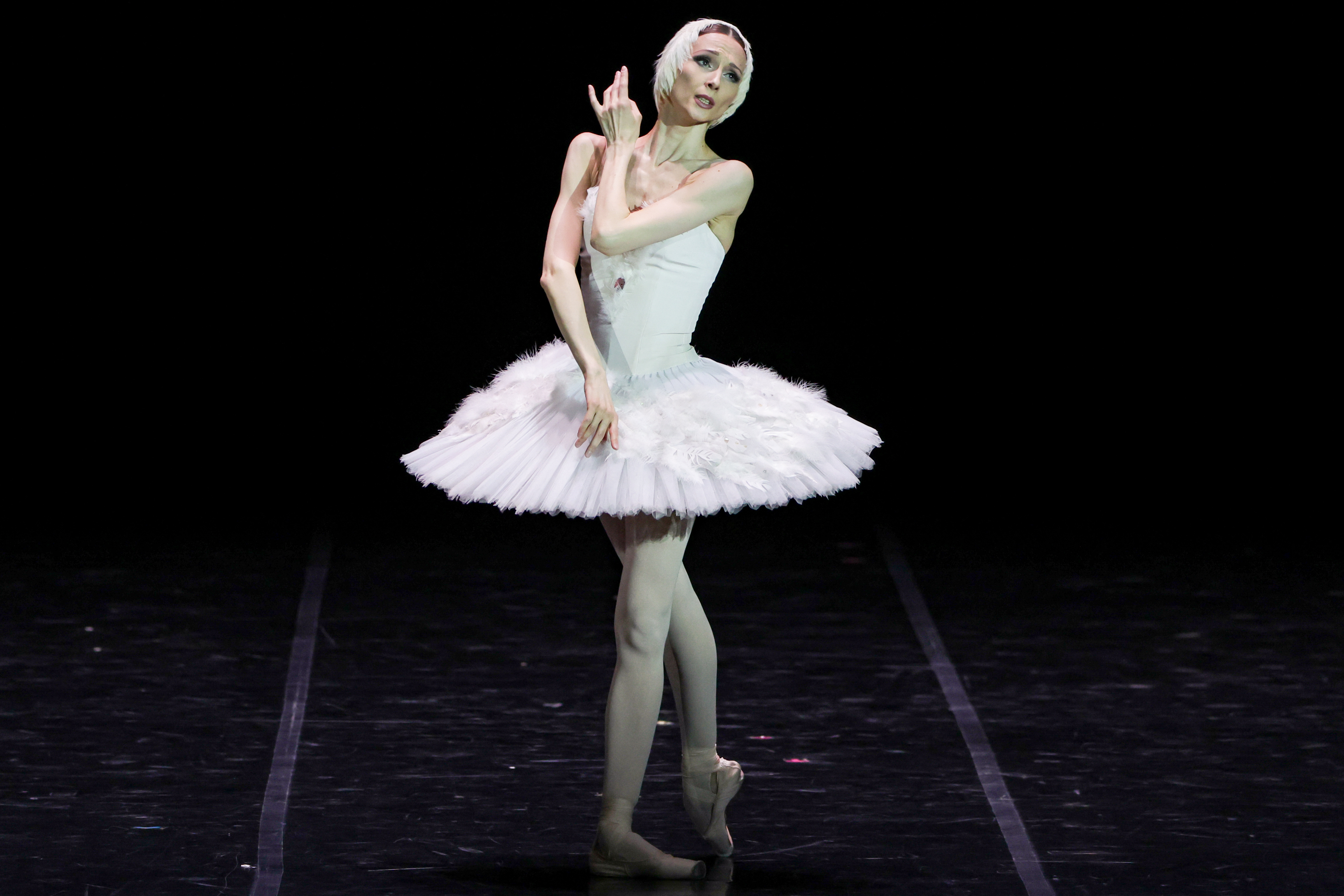 Прима-балерина Большого театра России Светлана Захарова исполняет хореографическую миниатюру "Умирающий лебедь"