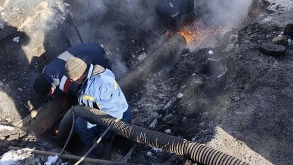 В Орджоникидзевском районе Новокузнецка развернулись аварийные работы на тепловых сетях. Бригада коммунальных служб оперативно прибыла на место, чтобы ликвидировать сбой в системе теплоснабжения.