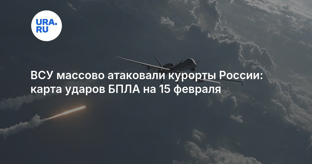 Минувшей ночью украинские военные нанесли удары по пяти регионам России. По данным Минобороны РФ, системы ПВО сбили 211 беспилотников над территорией страны. В поселке Волна в результате падения обломков дрона произошло возгорание резервуара с нефтепродуктами. Этой ночью временные ограничения на прием и отправку воздушных судов вводились в аэропорту Сочи. А также воздушных гаваней Владикавказа, Моздока, Грозного и Магаса. Карта ударов ВСУ на 15 февраля — в материале URA.RU.