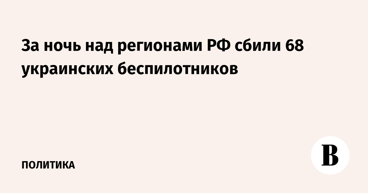 С 23:00 мск 14 февраля до 7:00 мск 15 февраля дежурными средствами ПВО перехвачено и уничтожено 68 украинских беспилотных летательных аппаратов самолетного типа. Об этом заявило Минобороны РФ.