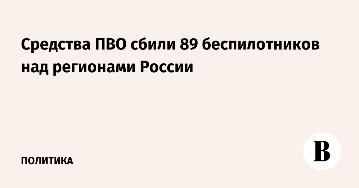 Российские силы ПВО сбили 89 украинских беспилотников над российскими регионами, сообщили в Минобороны. Атаки были отражены в период с 14.00 мск до 20.00 мск.