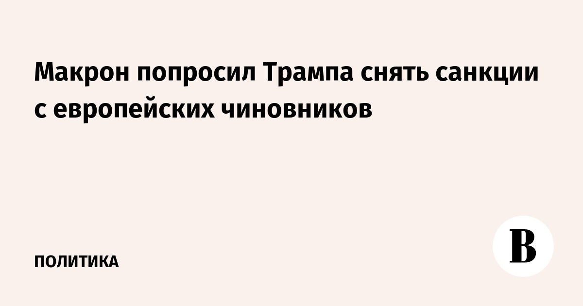 Президент Франции Эммануэль Макрон направил письмо президенту США Дональду Трампу с просьбой отменить ограничительные меры, введенные Вашингтоном в отношении европейских официальных лиц, включая бывшего члена Еврокомиссии Тьерри Бретона. Об этом пишет Bloomberg.