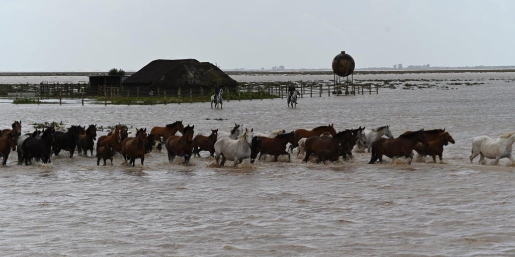 De otro lado, desde el Ayuntamiento de Hinojos han destacado que las tres cabañas de ganado que pastan en la marisma han sido evacuadas «con éxito» tras las intensas lluvias. «Vacas mostrencas, yeguas marismeñas y ovejas churras lebrijanas se encuentran ya sanas y a salvo, en la finca alternativa de El Moralejo», explica el Consistorio.