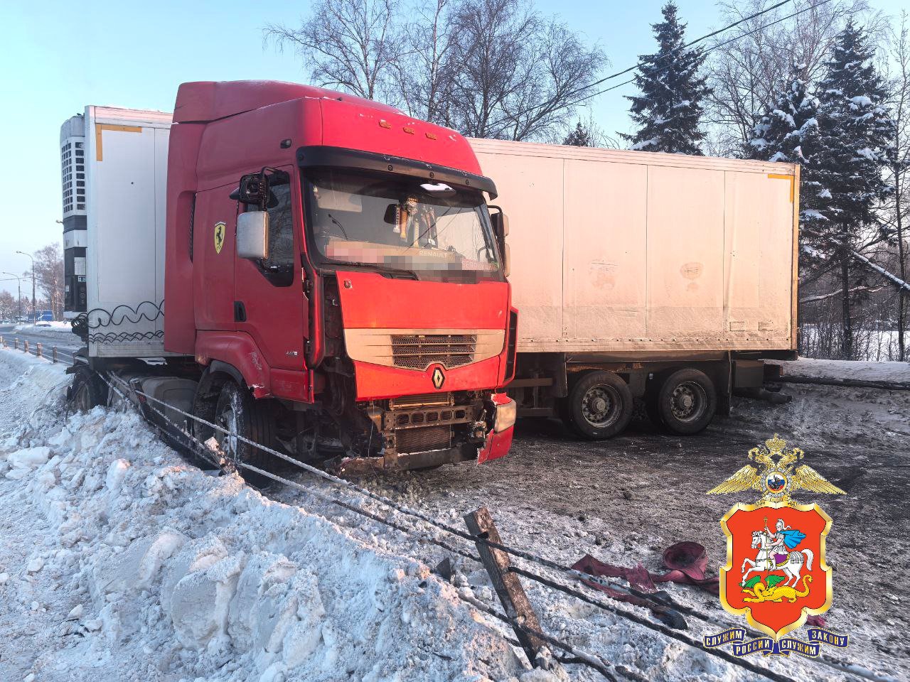 Водитель грузовика не справился с управлением, в результате чего автомобиль выехал за пределы дорожного полотна и совершил наезд на тросовое ограждение. Сообщается, что пострадавших в результате этого ДТП не было.