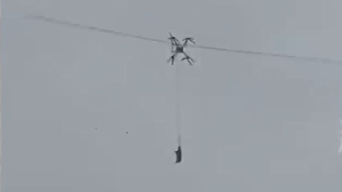 Tamní farmář se koncem ledna rozhodl použít dron k přepravě zvířete přes hornatou oblast, ale dron se zapletl do elektrického vedení.