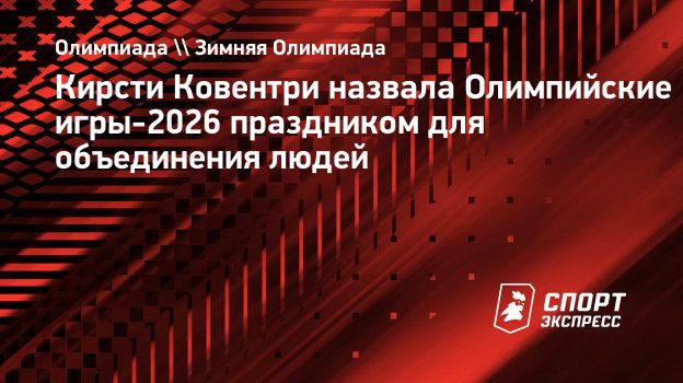 Информация на этой странице взята из источника: https://www.sport-express.ru/olympics/winter/news/kirsti-koventri-nazvala-olimpiyskie-igry-2026-prazdnikom-dlya-obedineniya-lyudey-2396737/