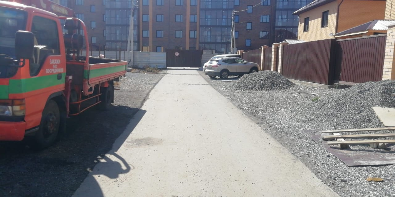 По словам Ольги Бучук, дорогу перекрыли по решению владельцев квартир в четырехэтажке: им принадлежит участок, в который и упирается проезд. Мнение, утверждает она, было озвучено на собрании, которое проходило в чате дома.