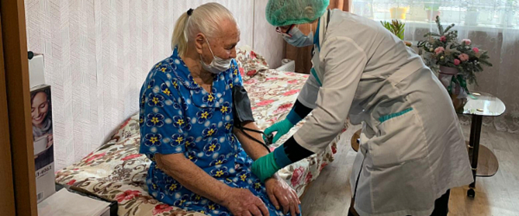 Выездная прививочная бригада Артёмовской городской больницы приехала к долгожительнице на дом, поскольку в период неблагополучной эпидемиологической ситуации людям старшего возраста рекомендуется воздержаться от посещения общественных мест.