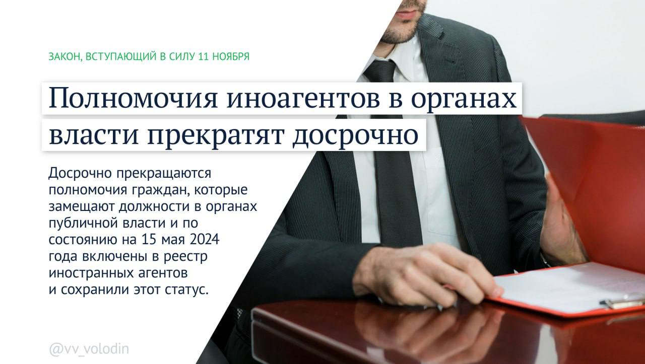 📌Полномочия иноагентов в органах власти прекратят досрочно.