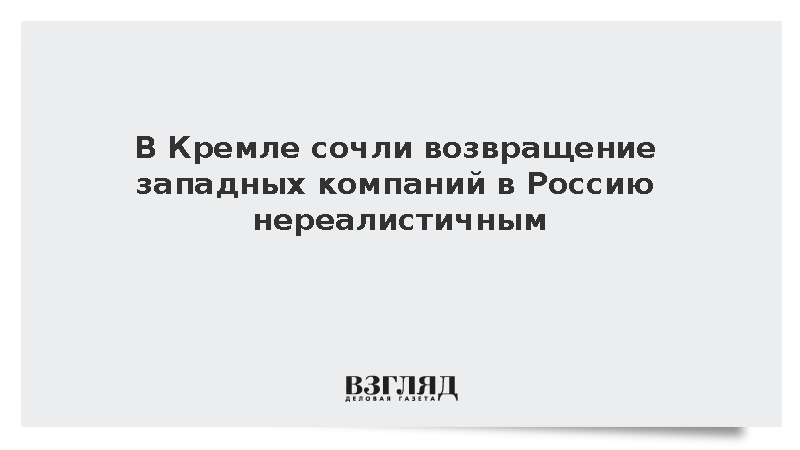 Пресс-секретарь президента Дмитрий Песков заявил, что западные компании не проявляют желания возвращаться и пока не предпринимают никаких практических шагов в этом направлении, поэтому их возвращение на данный момент не представляется реалистичным, передает RT.