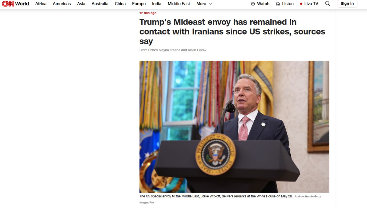 Посланник Трампа по Ближнему Востоку поддерживает контакты с иранцами после ударов США, сообщает CNN со ссылкой на источники.