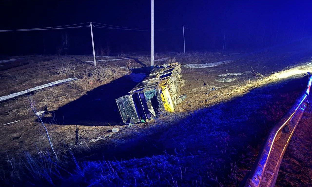 Автобус с 68 пассажирами перевернулся в Самарской области.