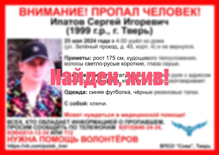 Игорь Ипатов исчез ранним утром 25 мая. Около 4 часов утра мужчина ушел из дома в тапках и пропал. Сообщалось, что он имеет проблемы со здоровьем и нуждается в помощи медиков.
