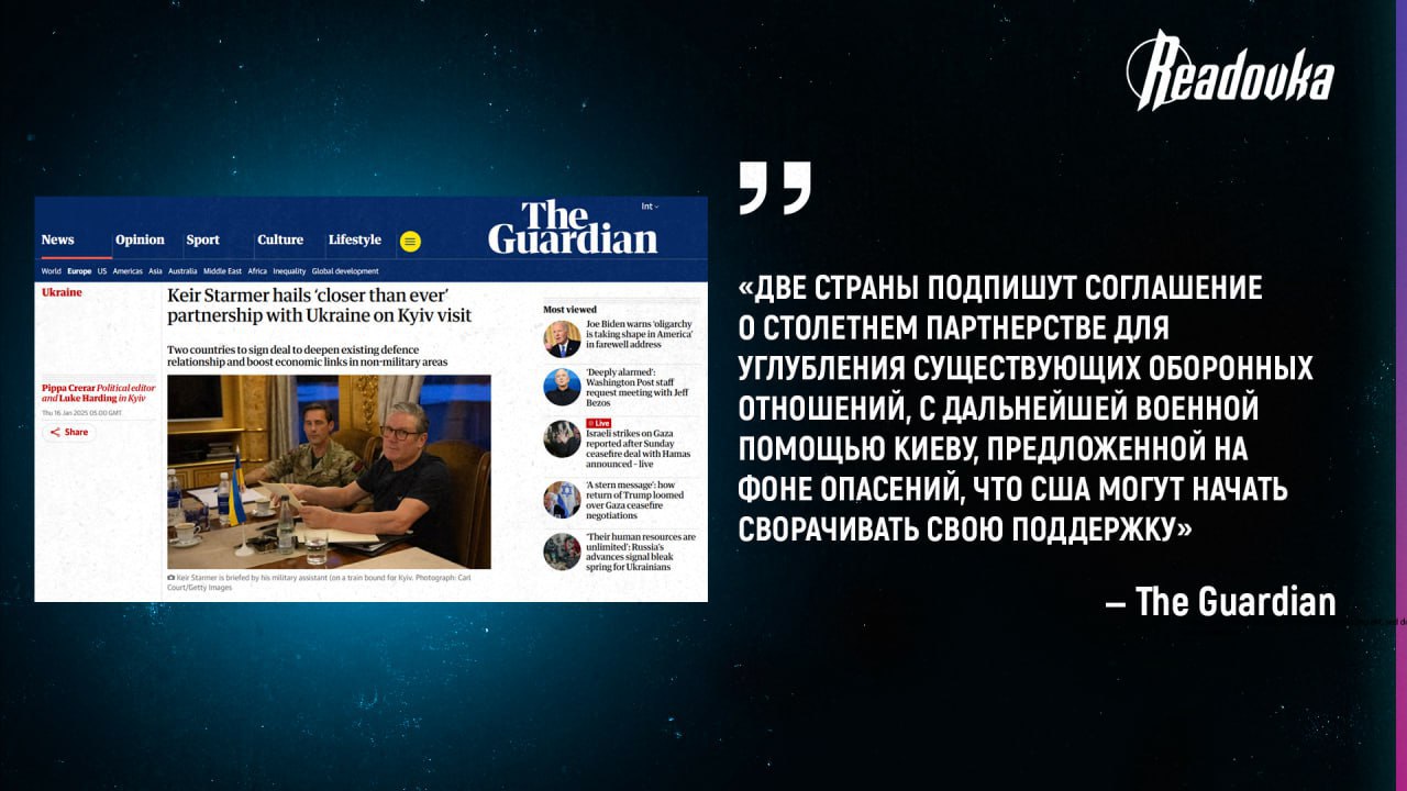 Британское издание The Guardian сообщило, что с ранее не анонсированным визитом в Киев прибыл премьер-министр Великобритании Стармер. Источник издания уточнил, что в рамках посещения незалежной глава британского правительства подпишет с Зеленским договор о 100-летнем партнерстве двух стран.