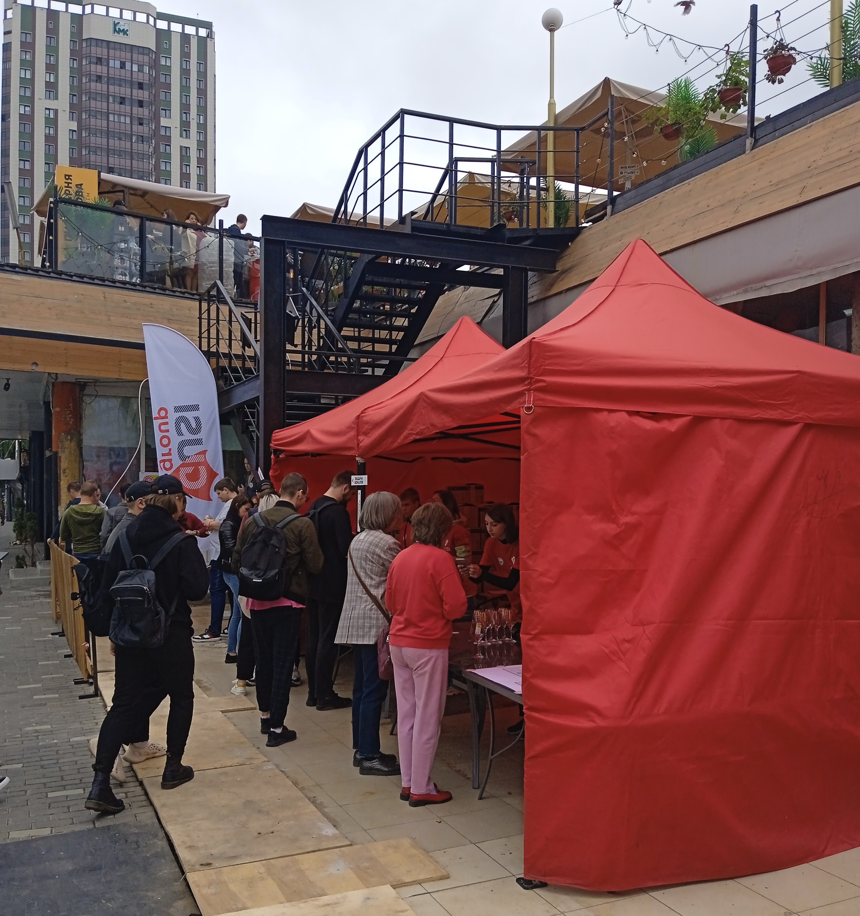 «СибКрафтФест» - это ставший уже регулярным фестиваль, который проводят пивоварня GUSI. Обычно, любители и производители крафта собираются в здании Технопарка в Академгороде и на парковке перед ним. Но на этот раз организаторы решили позвать поклонников необычных напитков на площадку в центре города. Ей стала верхняя летняя веранда «Гастрокорта» расположенная на крыше Центрального рынка.