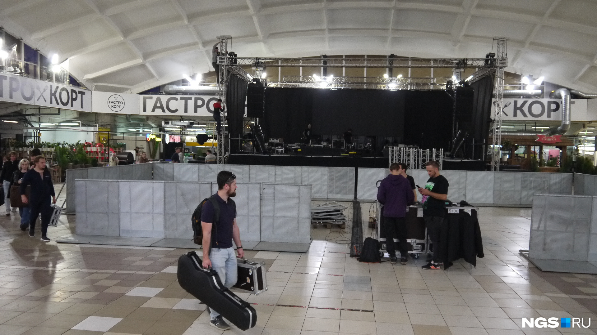 Внутри самого Центрального рынка сегодня планируется очередной концерт. Все прилавки с продуктами из основного зала убраны, немногочисленные потенциальные покупатели (не знакомые ещё с нововведениями на рынке) с недоумением рассматривали пустой зал, где велись подготовительные работы к шоу.