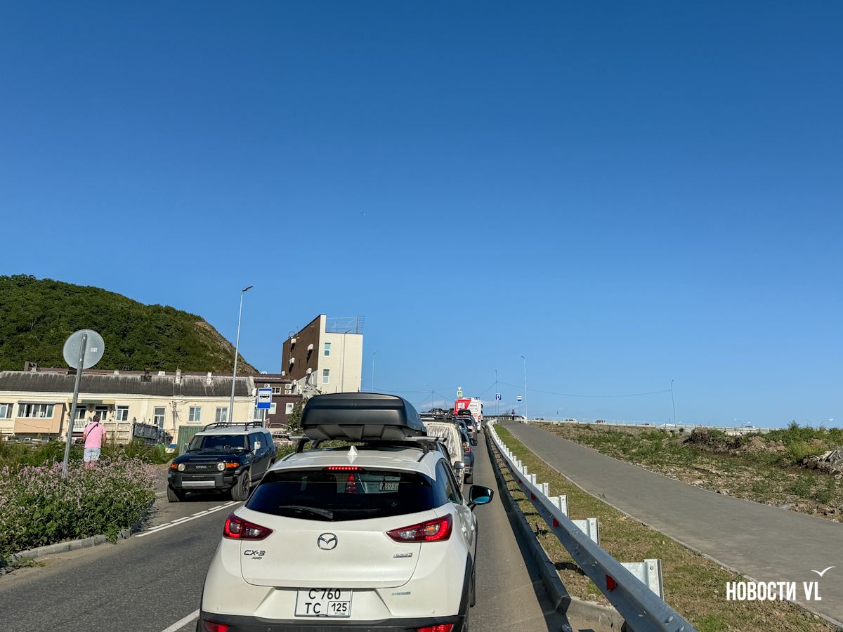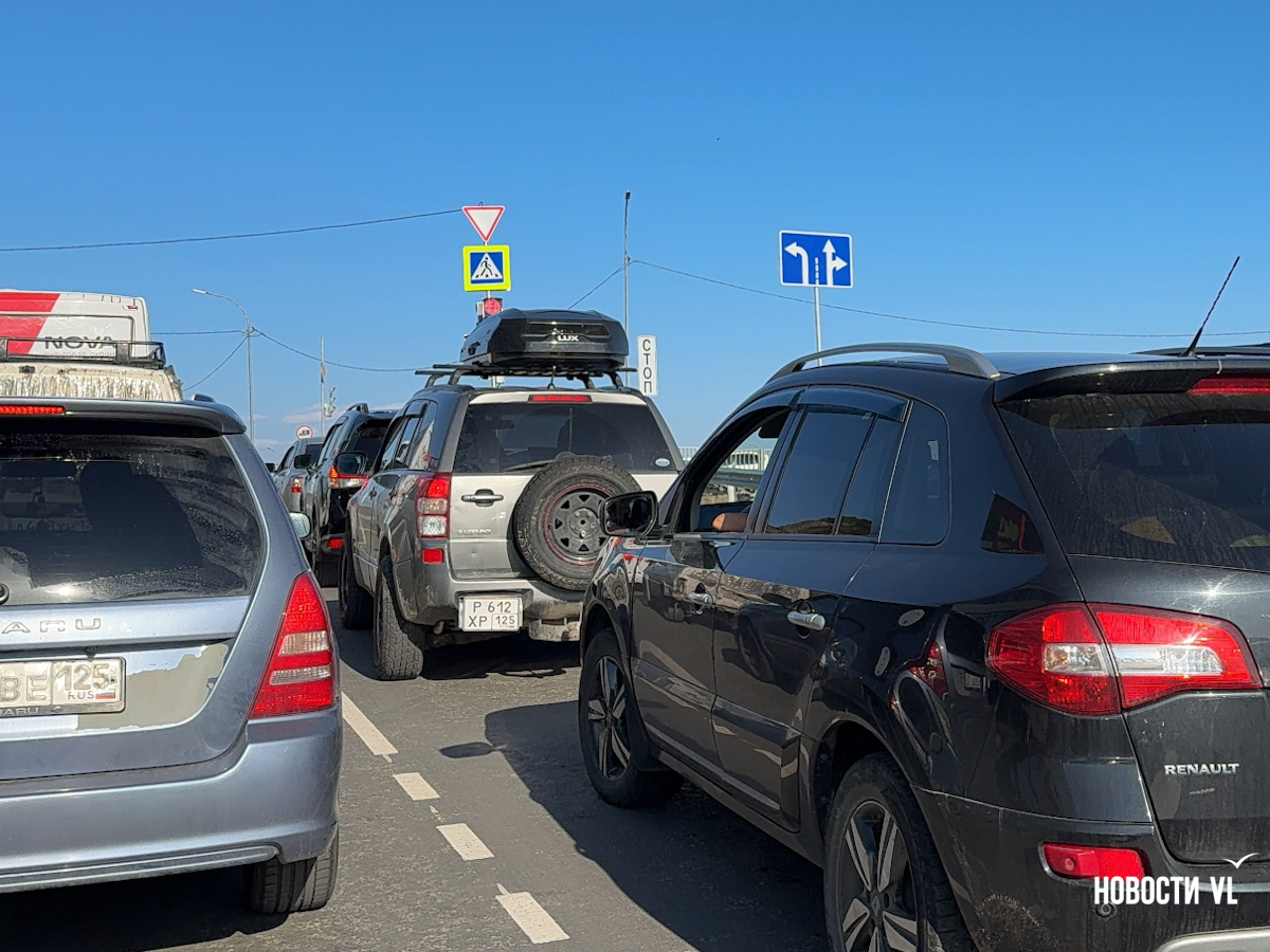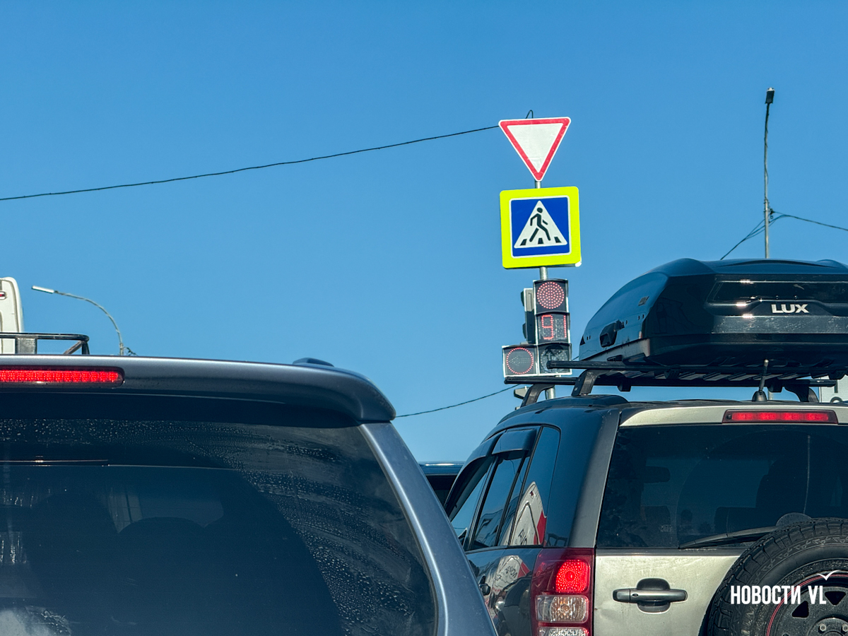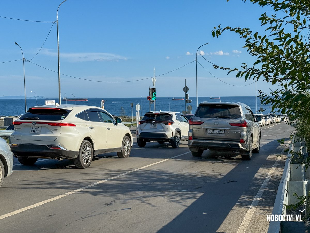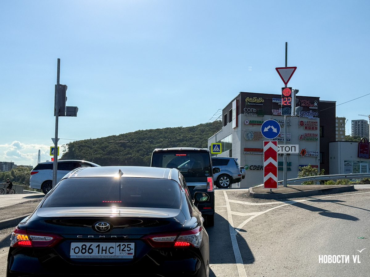 Для тех, кто спускается с Тихой, зелёный загорается, когда водители, движущиеся со стороны Седанки останавливаются. На проезд даётся 77 секунд – прямо и направо. После этого на 70 секунд загорается красный и включается дополнительная секция для поворота налево в сторону мостов. Для поворота выделено всего 20 секунд. Это пока самое проблемное направление. Чуть больше километра дороги от перинатального центра до перекрёстка теперь занимает около 10 минут. Машины едут в одну полосу, перед перекрёстком их становится две – одна для поворота налево к мостам, другая для выезда на трассу или для спуска к пляжам. Бывает, что одна или другая пустуют, только потому что автомобилисты не могут протиснуться в нужную полосу и стоят в одной очереди. А бывает, водители и сами задерживают поток: отвлекаются на телефоны, стоя в пробке, не сразу замечают, что машины впереди продвинулись.