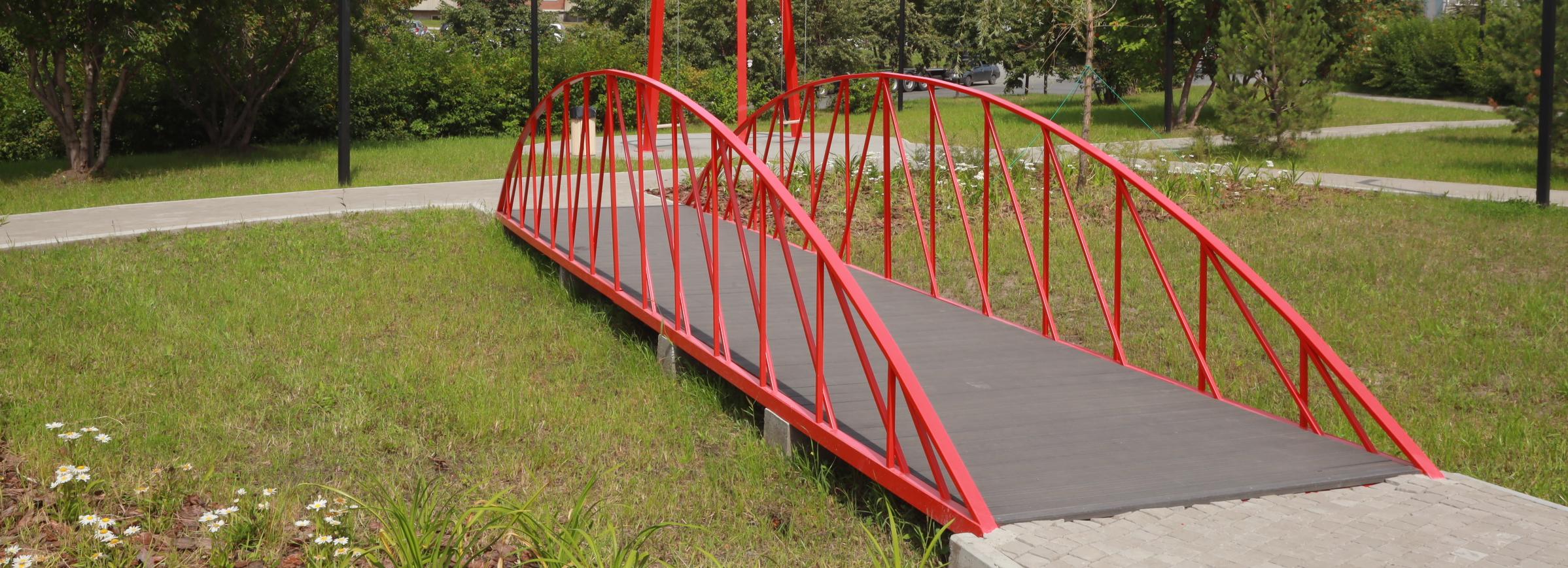 Украшением сквера стала мини-копия пешеходного моста, который считается негласным символом микрорайона «Родники».