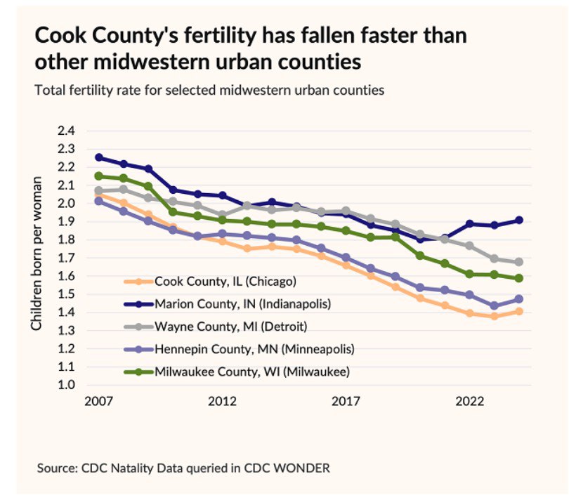 Доля детей в населении центра Чикаго снизилась с 16% в 2000 году до 10% в 2010 году, а затем до 9% в 2020 году: при этом общая численность населения центра Чикаго выросла.
