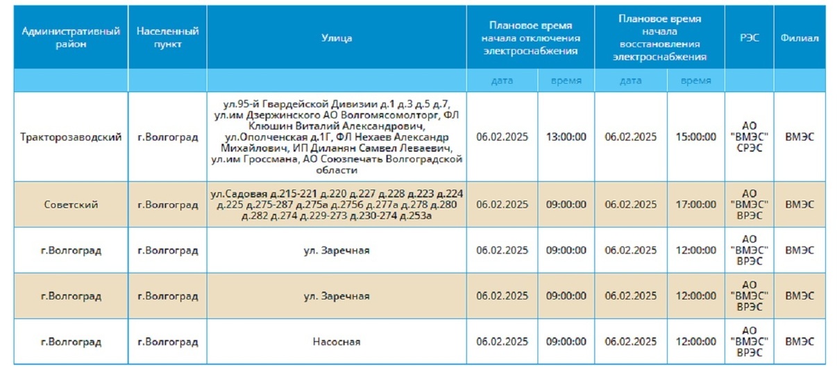 Ресурсоснабжающая компания опубликовала список адресов, где не будет электричества 6 февраля: