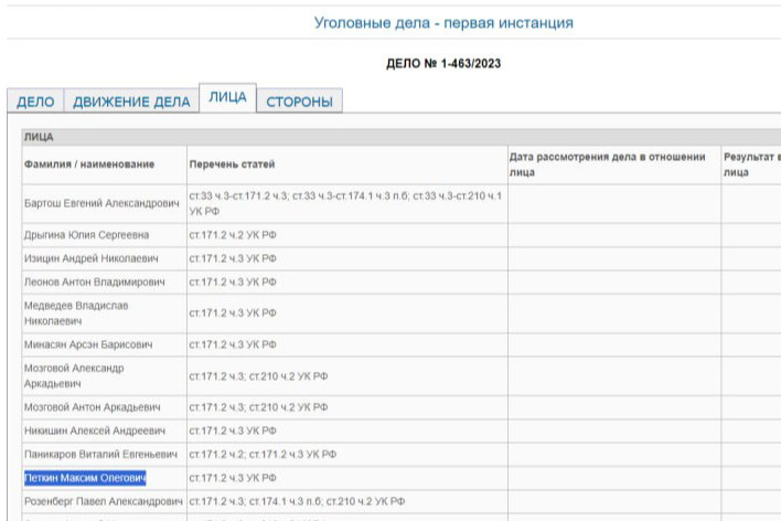 - Анастасия Петкина — жена Максима Петкина, подсудимого по статье 171.2 УК РФ. По данным наших источников, он курировал игровую деятельность, был ответственным за силовые акции в преступном сообществе;