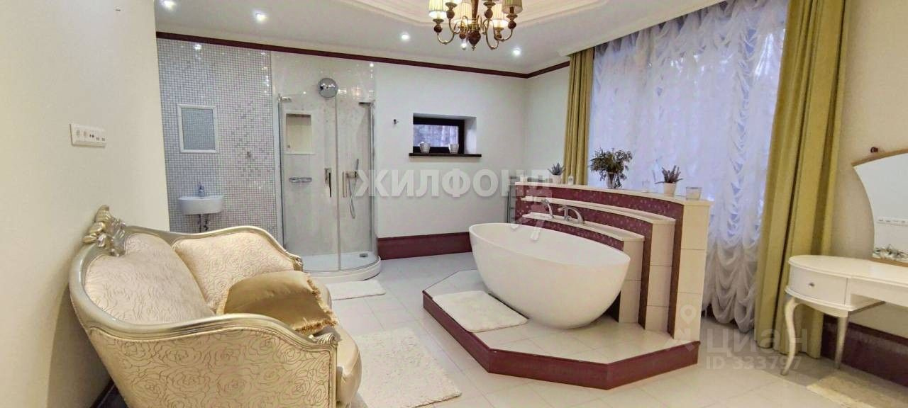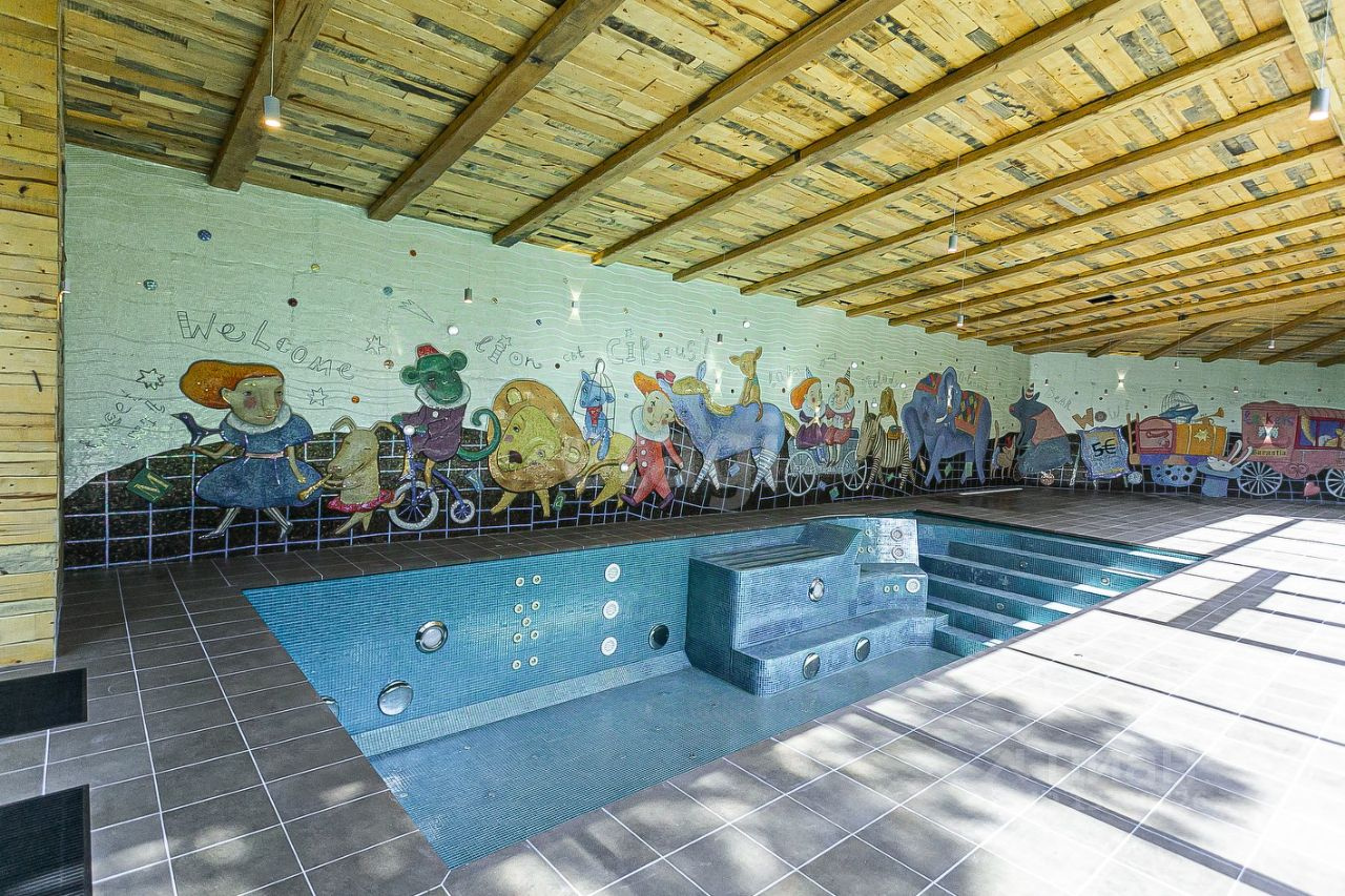 Гигантский дом площадью 1000 квадратных метров выставили на продажу в конце года. Но по наблюдениям корреспондента НГС, недостроенный особняк появлялся в продаже и ранее. Теперь коттедж почти завершили — внутри появилась огромная обставленная кухня, крытый бассейн с мозаичными стенами, космические люстры, спальни и детская. За дом, достойный оказаться на страницах интерьерного журнала, просят 120 миллионов рублей.