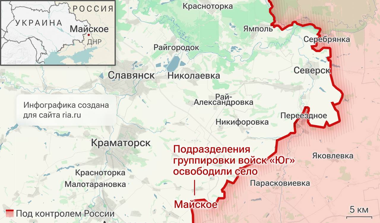 Подразделения "Южной" группировки войск улучшили положение по переднему краю и освободили населенный пункт Майское Донецкой Народной Республики.