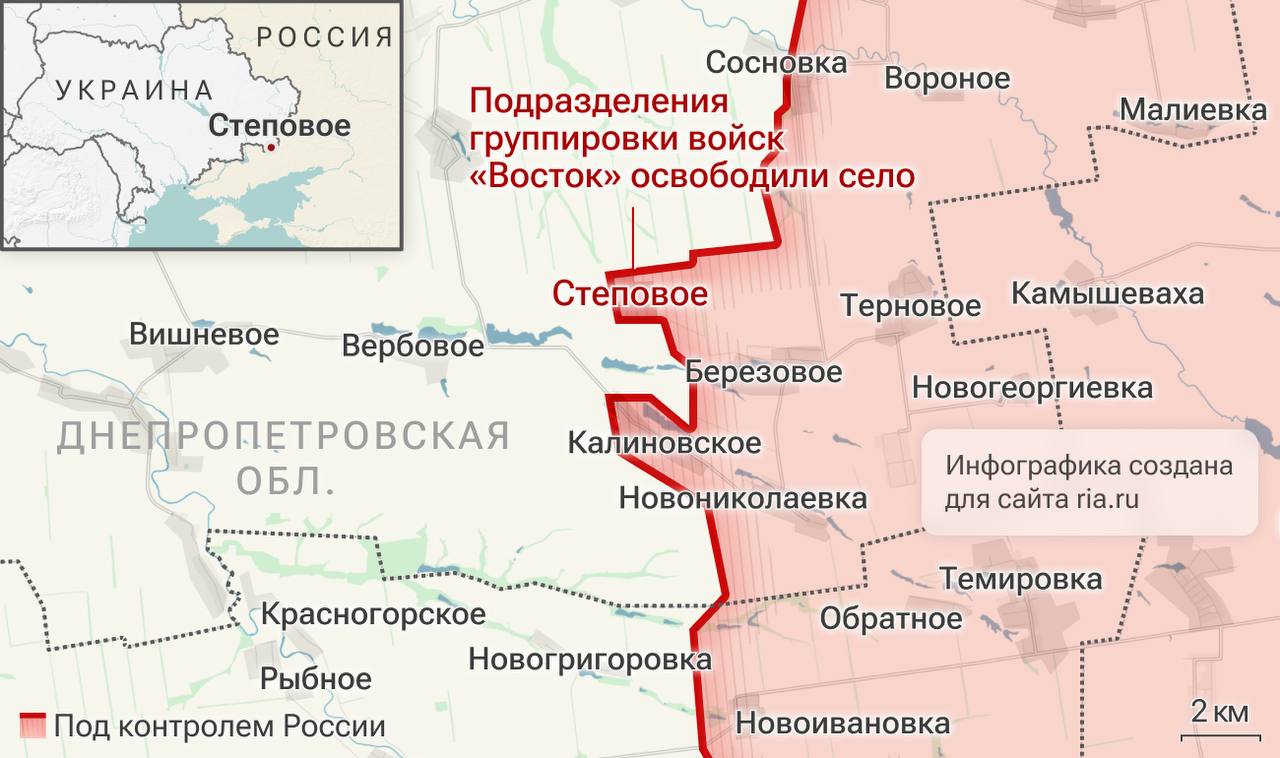 Подразделения группировки войск "Восток" продолжили продвижение в глубину обороны противника и освободили населенный пункт Степовое Днепропетровской области...