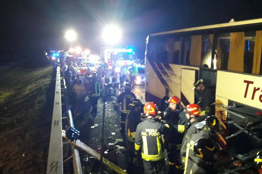 Автобус с украинцами попал в ДТП в Италии. Видео © Twitter / vigilidelfuoco