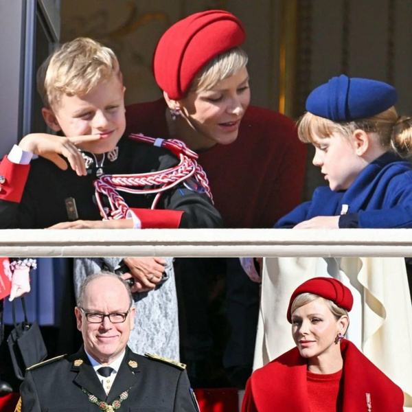 Утром в воскресенье князь и княгиня Монако с детьми по традиции поприветствовали с балкона подданных. Княгиня Шарлен предстала перед публикой в красном монохромном образе, состоящем из облегающего платья, пальто и элегантной шляпки.
