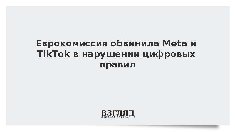 Еврокомиссия заявила о том, что компании Meta* (признана экстремистской в России) и TikTok нарушают цифровые нормы Евросоюза, говорится в предварительных итогах расследования, опубликованного европейским регулятором.