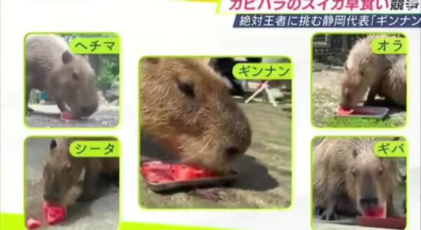 Победителем в этом году стала капибара из детского зоопарка в Хигасимацуяме, которая справилась с арбузом за 1 минуту и 48 секунд. «Серебро» досталось капибаре из зоопарка Идзу Сяботэн (2 минуты 47 секунд), а «бронзу» завоевала капибара из зоопарка «Королевство животных» в Насу (2 минуты 55 секунд).