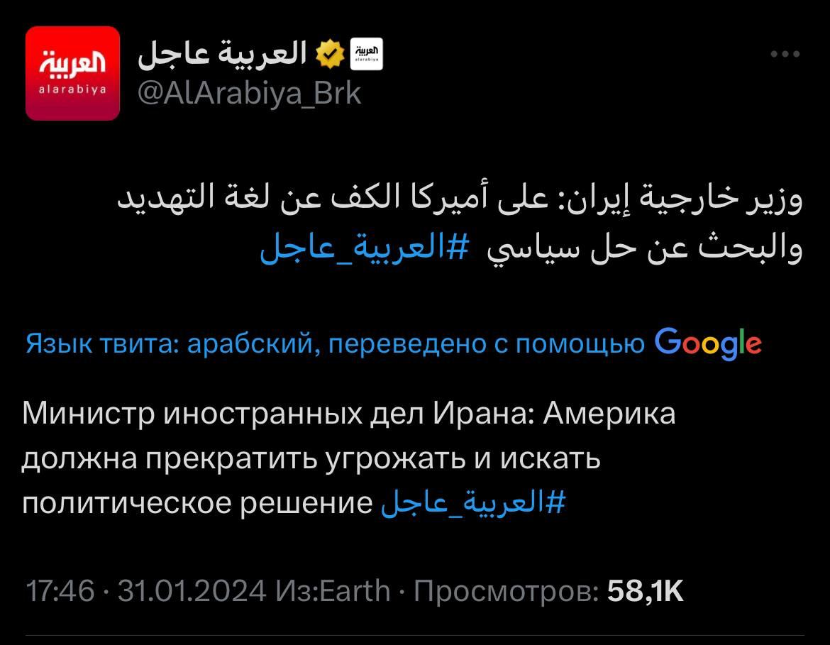 Министр иностранных дел Ирана также предупредил США, что за их ударом последуют ответные действия. Также глава МИД посоветовал Вашингтону искать политическое решение.