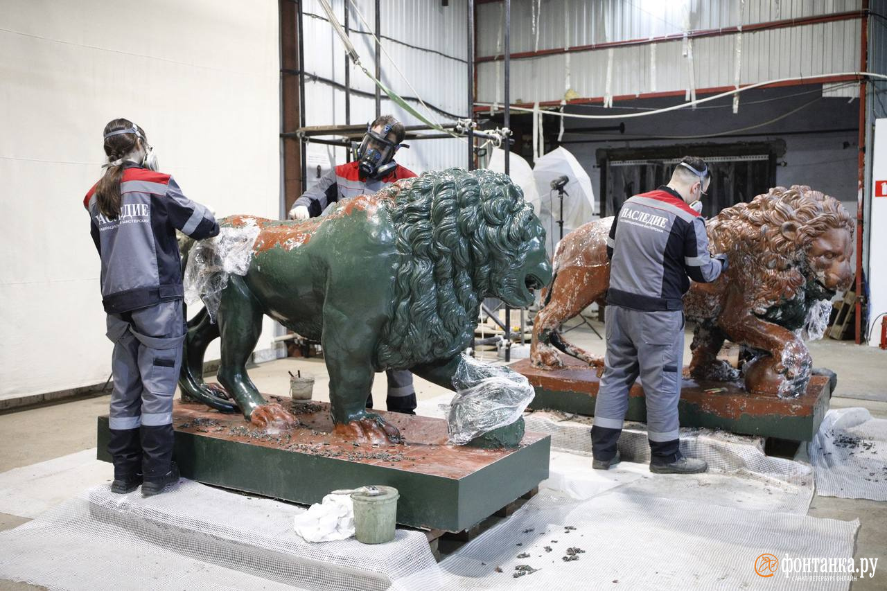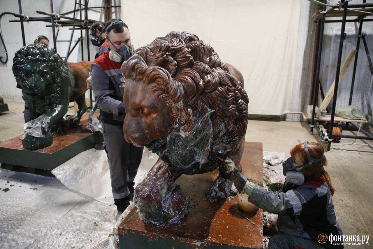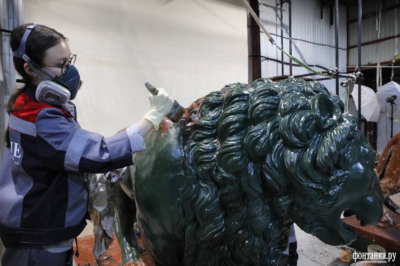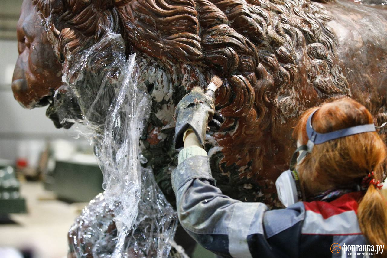 Туристы нанесли львам значительный урон. Посмотрите на реставрацию львов с Адмиралтейской набережной