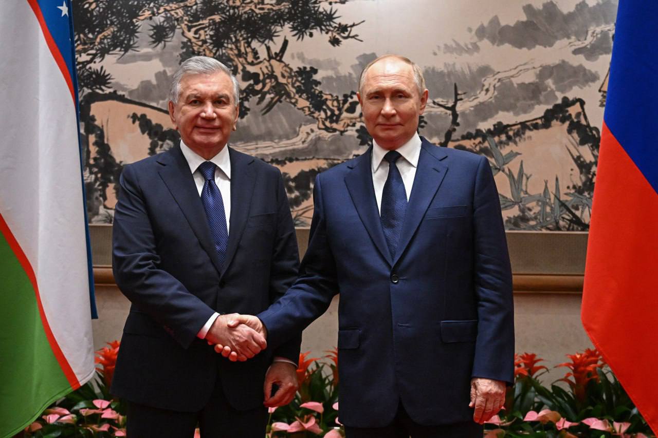 Президент России Владимир Путин и лидер Узбeкистана Шавкат Мирзиёев проводят переговоры в Китае.