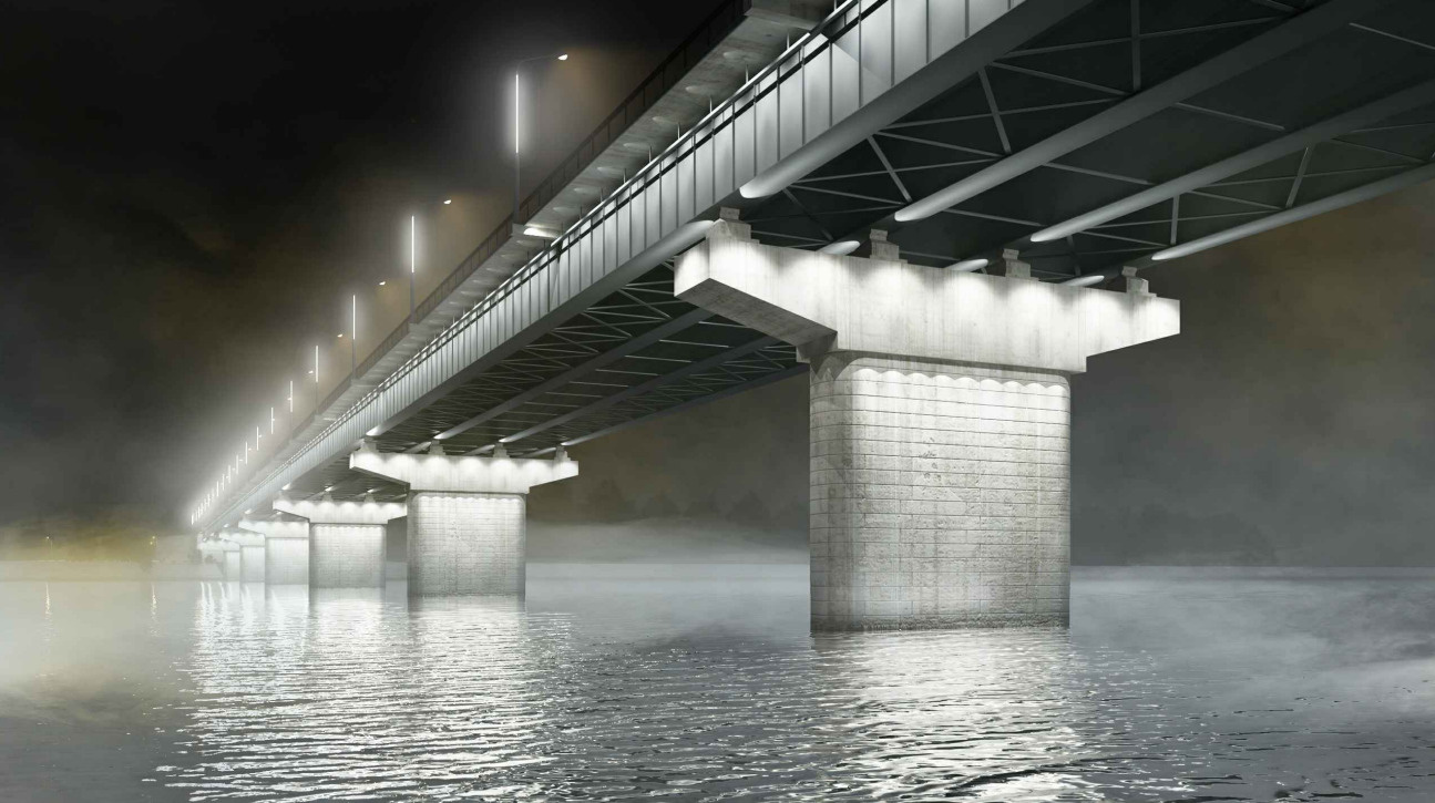 Как указано в документах, прикрепленных к тендеру, в ходе капремонта моста установка архитектурной подсветки запланирована не только на самой переправе. Аналогичное оборудование смонтируют на выезде с моста, на виадуке на пересечении ул. Терешковой и пр. Притомского. При включенной подсветке он сможет принимать такой вид.
