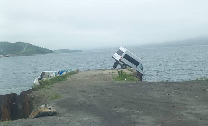Сегодня днём в посёлке Зарубино Приморского края произошло ЧП. Микроавтобус с пассажирами съехал с пирса и завис над водой. А дальше случилось странное: водитель решил не вызывать помощь.