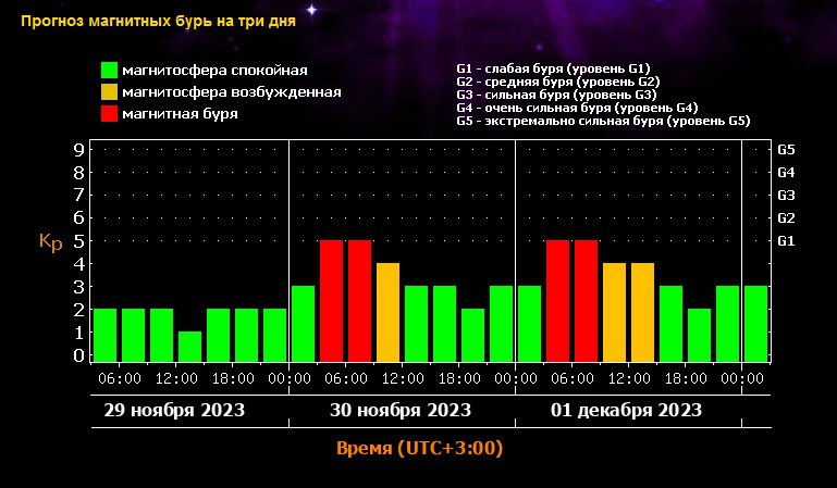 В ближайшие дни ожидаются магнитные бури, сообщает 29 ноября ведущий специалист центра «ФОБОС» Михаил Леус в своём телеграм-канале.