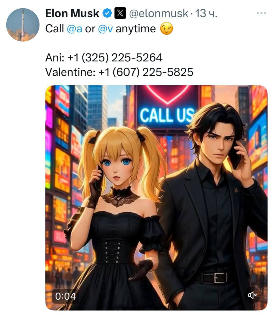 Телефонные разговоры с ИИ анонсировал Илон Маск.