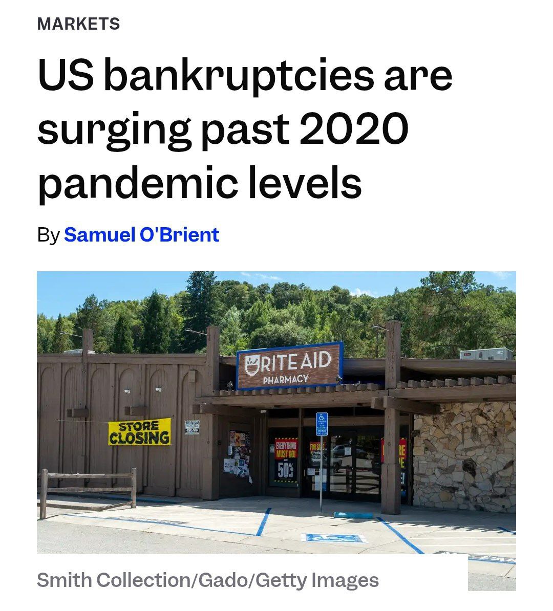 Количество банкротств в США превысило уровень пандемии 2020 года. По данным S&P, в прошлом месяце о банкротстве заявила 71 компания, как публичные, так и частные. Это больше, чем в июне, когда о банкротстве заявили 63 компании.
