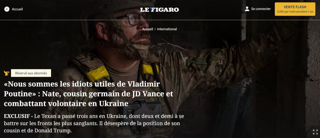 Двоюродный брат вице-президента США Вэнса воевал добровольцем на Украине на стороне ВСУ, пишет Le Figaro.