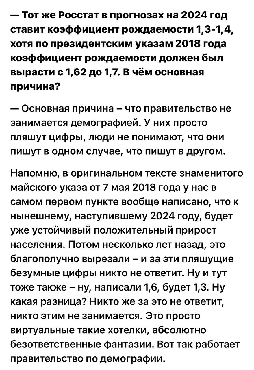Вот так... Читайте мою аналитику о реальном состоянии демографической политики в стране здесь https://www.nakanune.ru/articles/121767/