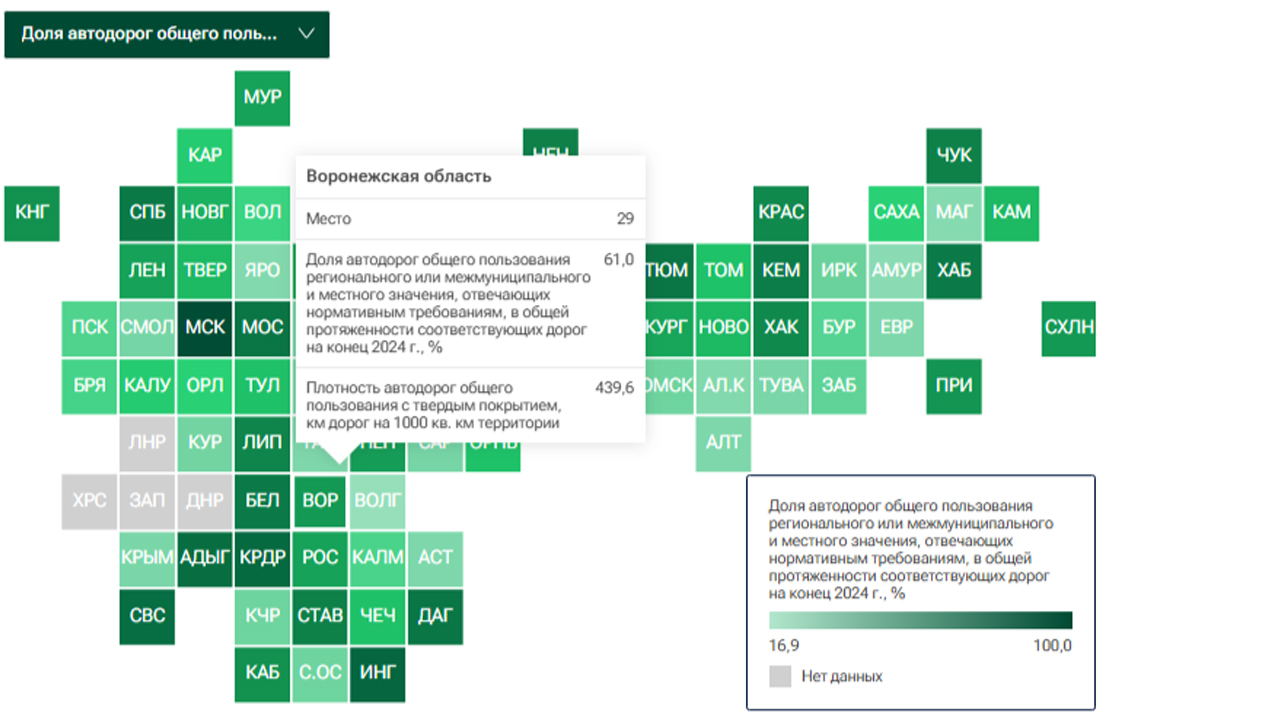 Кстати за год Воронежская область поднялась в рейтинге качества. В 2023 году качественных дорог в регионе было почти 57%. А в топе субъектов РФ область заняла 38 место.