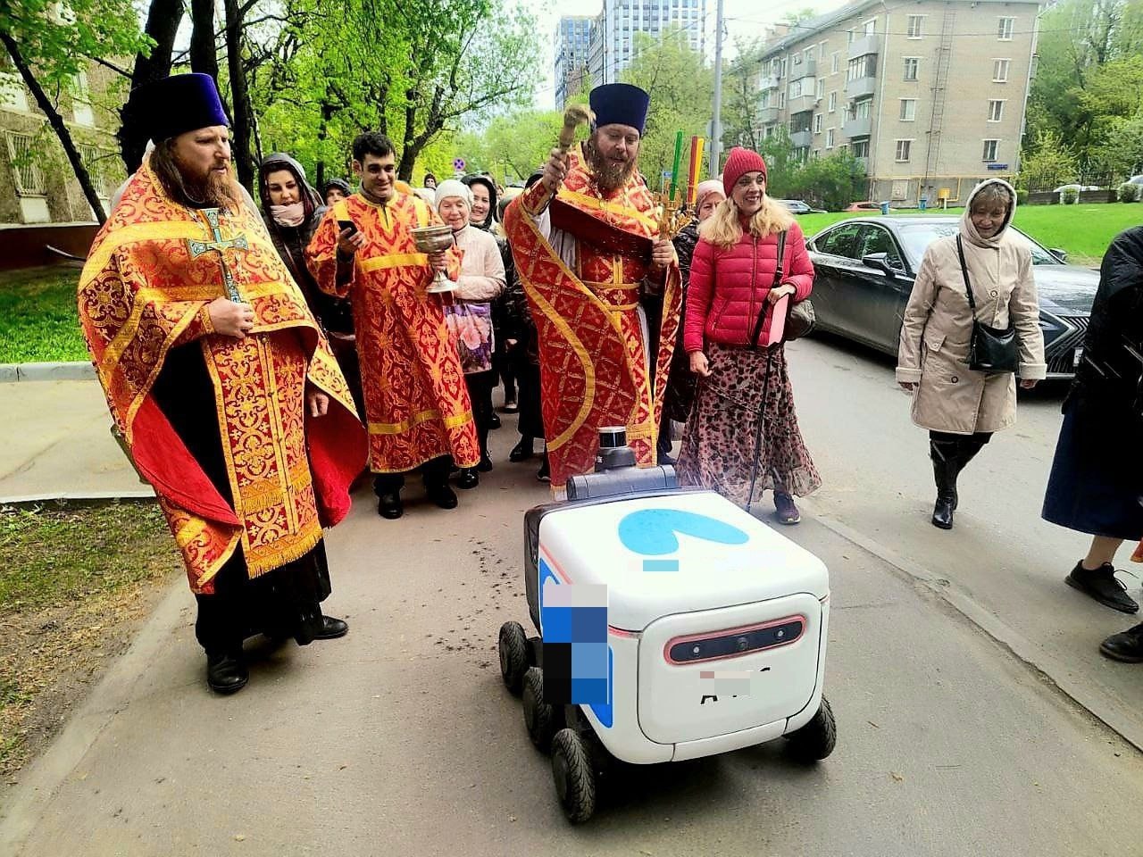 Поступок батюшки во время крестного хода по улицам Москвы успел произвести фурор: прямо во время священного шествия представитель церкви освятил робота-доставщика.