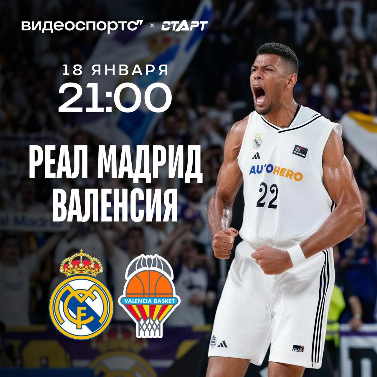 🏀 Сегодня вечером покажем баскетбольный матч «Реал» – «Валенсия» на ВидеоСпортсе“! Подключайтесь к трансляции в 21:00 мск