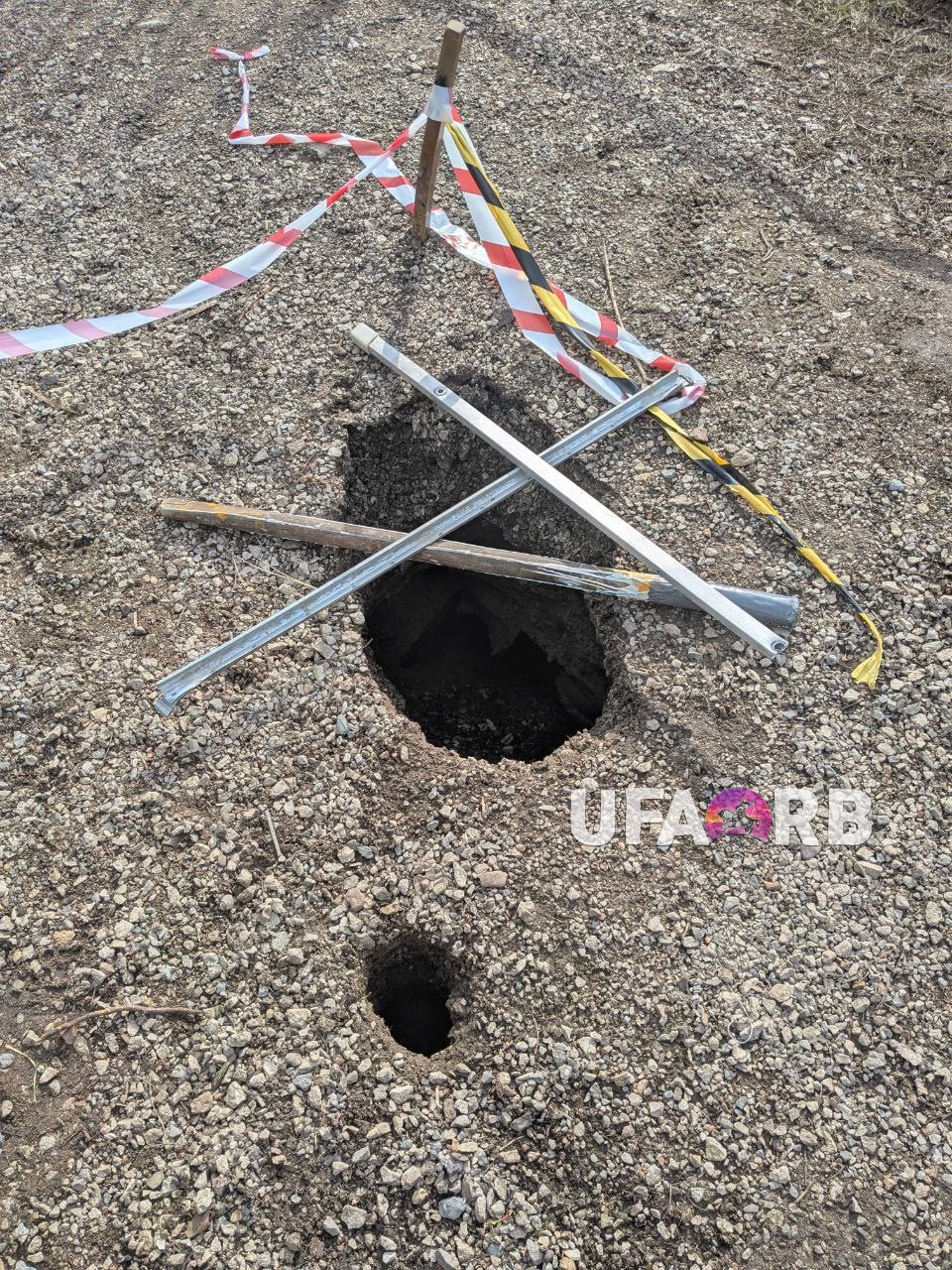Автор: Уфа, Амантая 12/1 очередной провал, теперь уже на детской площадке, тропинка ведёт к скверу Гвардейский