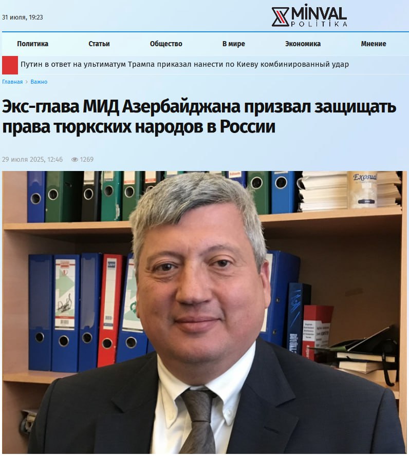❗️🇷🇺🇦🇿 Экс-глава МИД Азербайджана призвал диаспоры и тюрков в России «бороться за права»